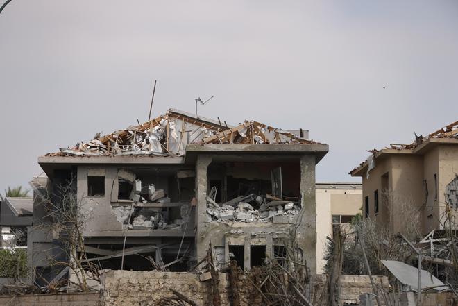 这是6月22日在以色列中部内斯齐约纳拍摄的在导弹袭击中被毁的建筑。 新华社发(贾马尔·阿瓦德摄)